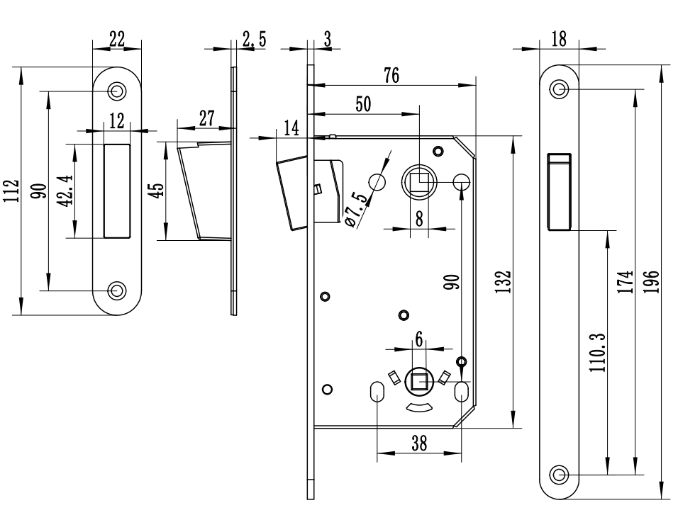 8550, Корпус магнитного замка для ванной комнаты, Средняя защелка