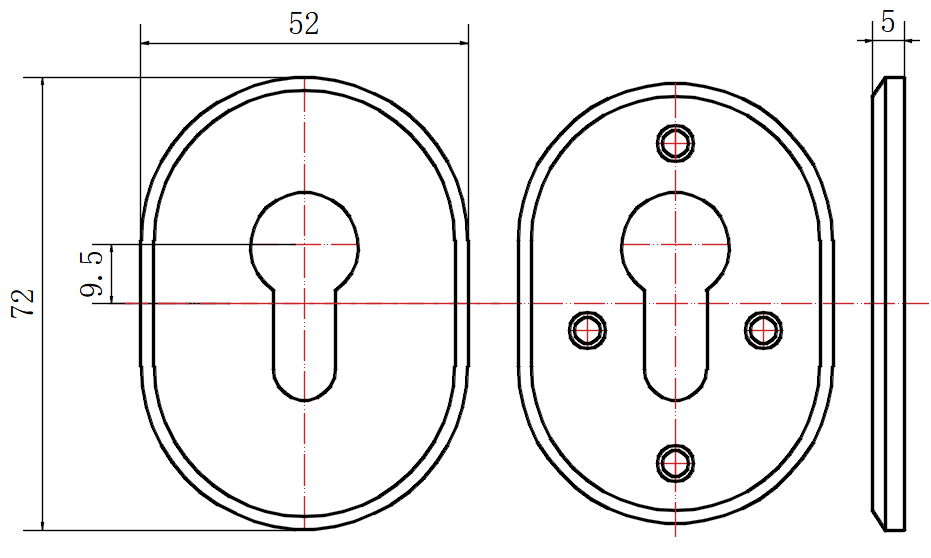 Овальная железная крышка 72мм*52мм*5мм, Железная основа, Отверстие цилиндра