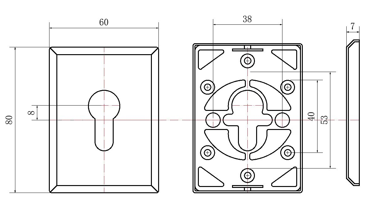 Прямоугольная железная крышка 82мм*62мм*8мм, Пластиковая основа, Отверстие цилиндра