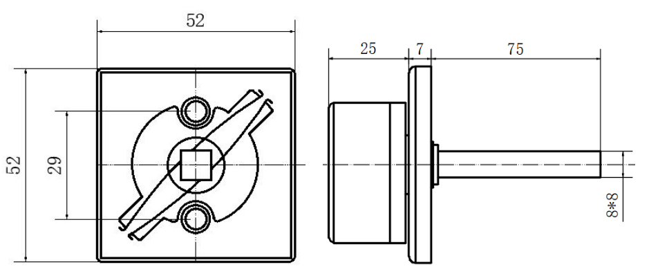Квадратная железная крышка Размер крышки 52*52*7 мм С алюминиевой ручкой Шпиндель 8*8*50 мм для двери 7 см