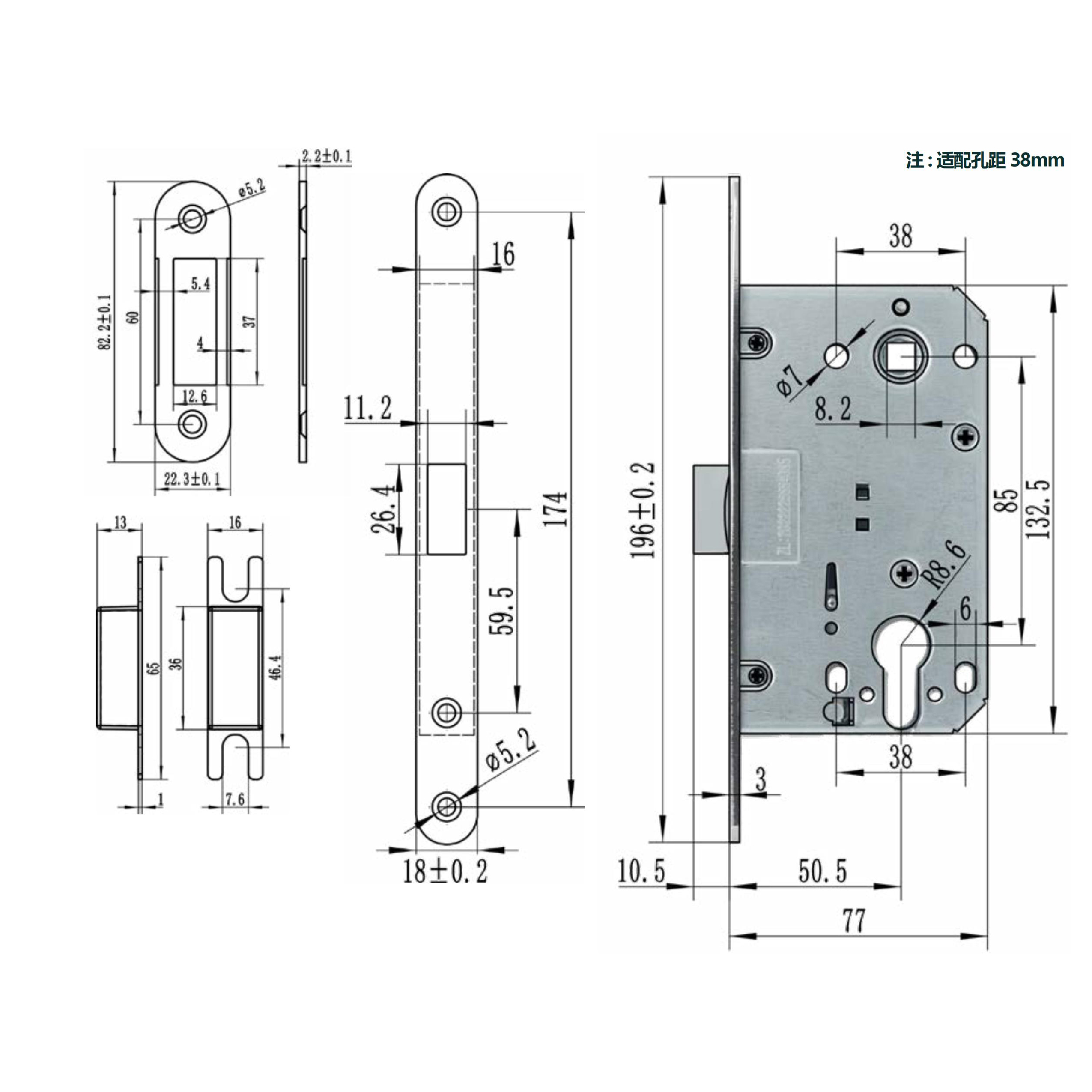 XB 8550PVC(410AGB) СРЕДНЯЯ ЗАЩЕЛКА Корпус замка с отверстием в цилиндре.